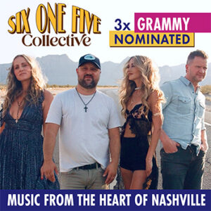 Six One Five Collective is a collaborative effort and creative brainstorm of four artists that are steeped in the musical mix of Country, Americana, Folk, and Pop. Their sound is an undeniable wall of distinctive harmonies, vocal prowess, and solo voices that are reminiscent of those great American bands that have come before them: Fleetwood Mac, Little Big Town, and more. Their show is an eclectic mix of original solo music, hit songs they’ve written for other artists, and high energy songs that are characteristic of the Six One Five sound.